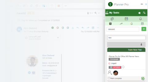 With iPlanner Pro you handle all your Planner tasks directly from Outlook. You can: